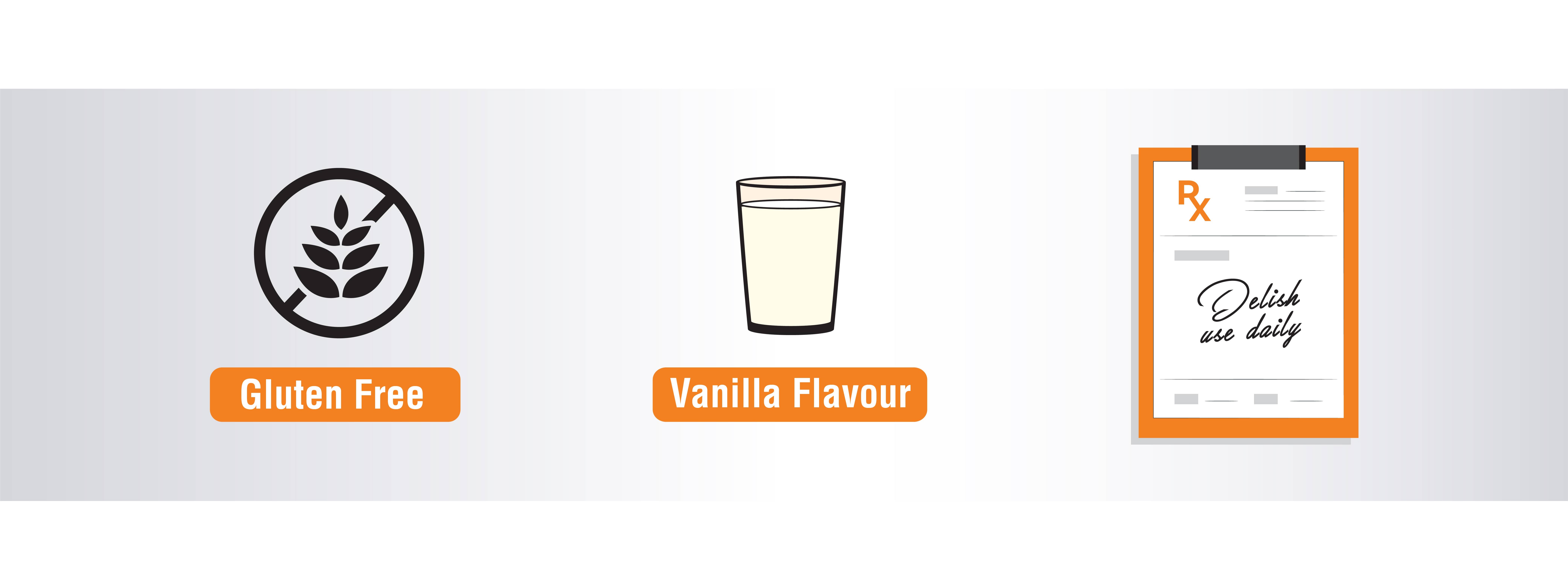 DELISH® is a balanced nutritional supplement designed to promote healthy aging and supports individuals at risk of malnutrition. It contains right balance of protein, fats, carbohydrates, and essential vitamins & minerals to meet daily nutritional requirements for health and wellbeing. Delish is enriched with prebiotics and probiotics to aid gut health.